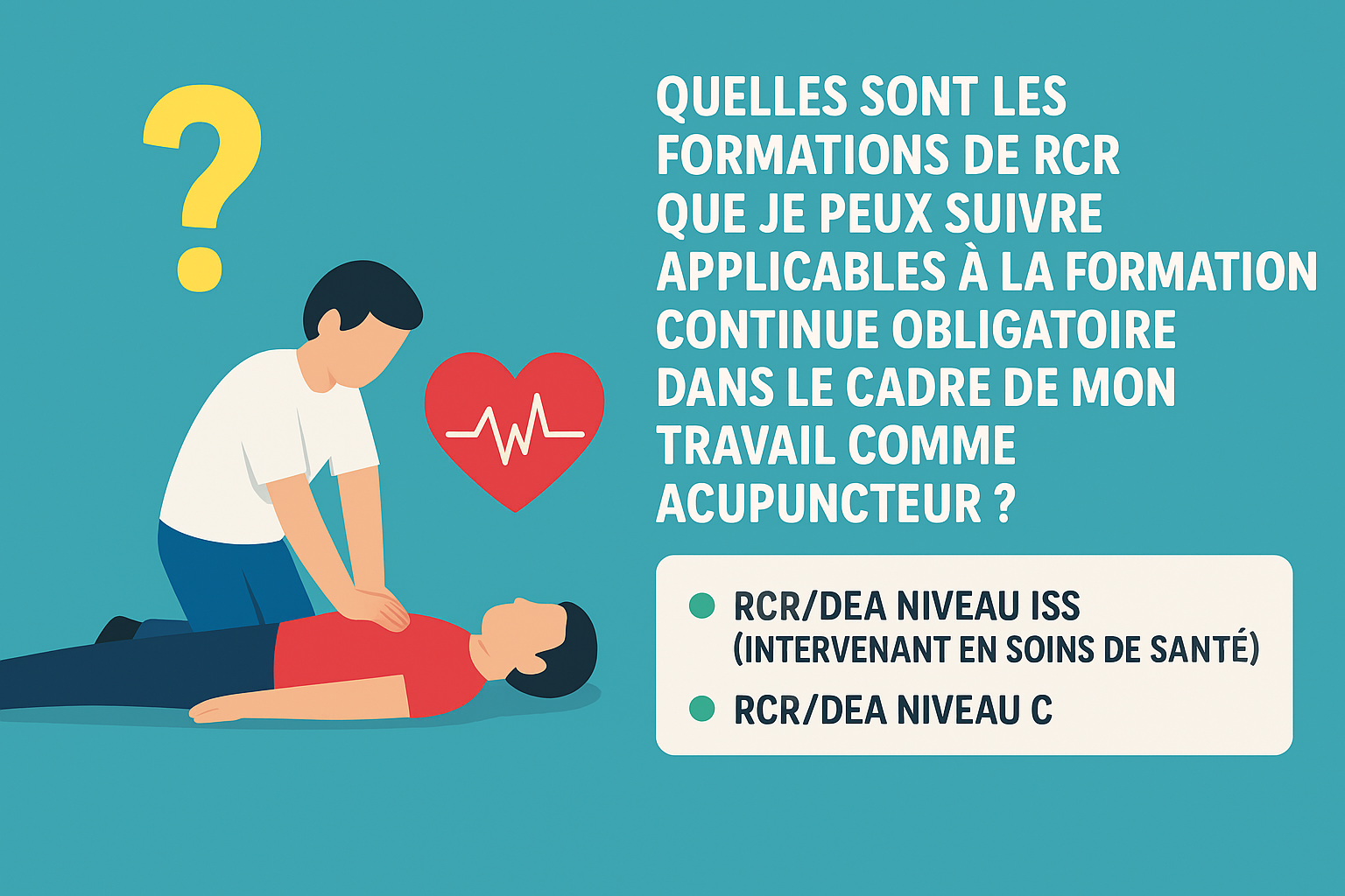 Q- Quelles sont les formations de RCR que je peux suivre applicable à la formation continue obligatoire dans le cadre de mon travail comme Acupuncteur ?